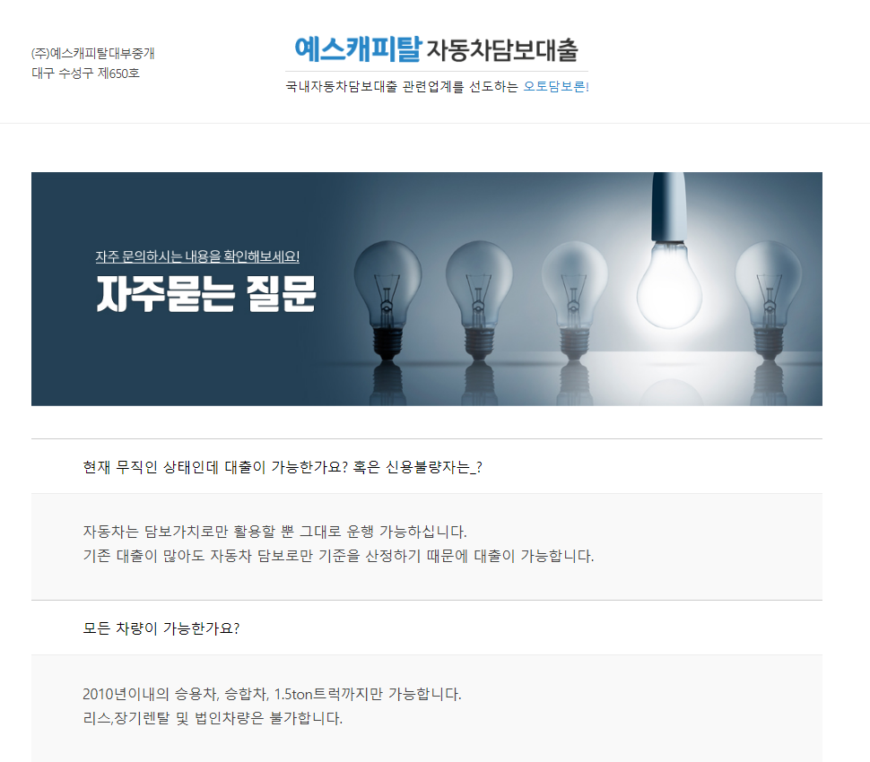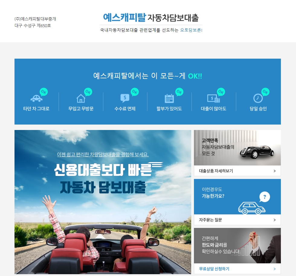 이젠 쉽고 편리한 차량 담보대출을 경험해 보세요. 신용대출보다 빠른 자동차 담보대출 예스 캐피털!