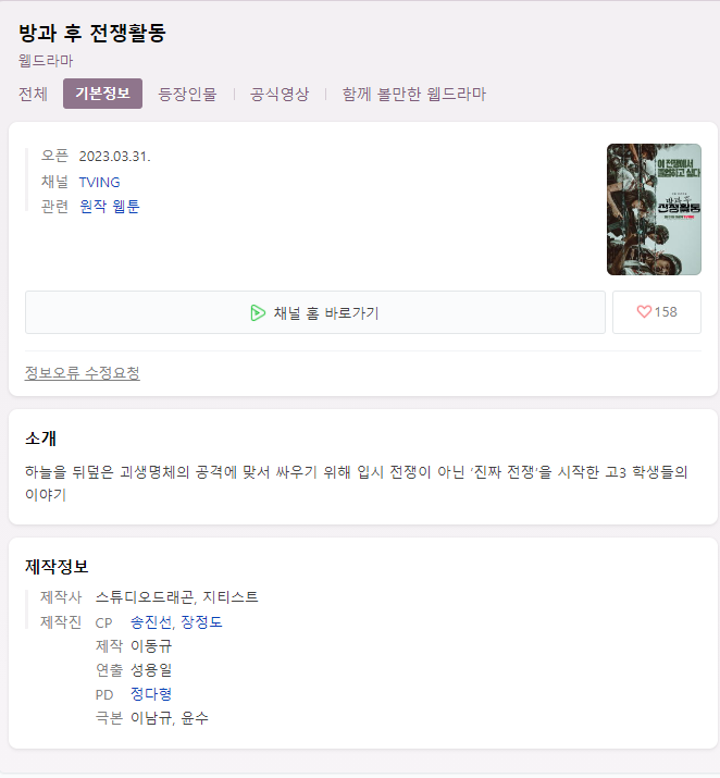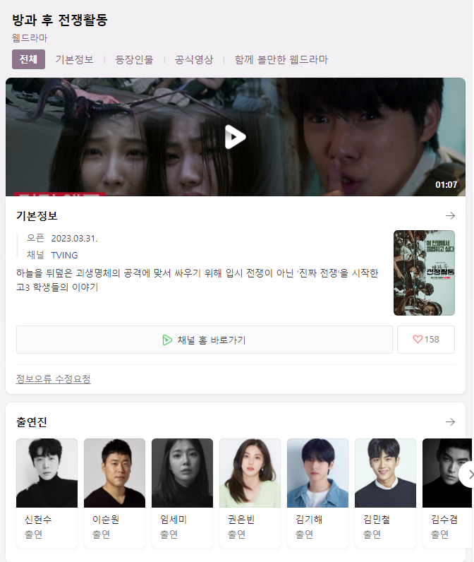 방과 후 전쟁활동 드라마 무료시청 실시간 시청